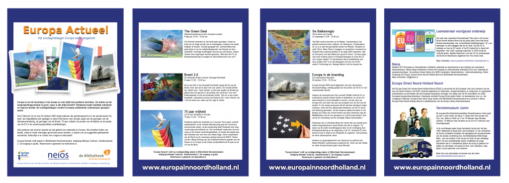 Alweer voor het vierde jaar op rij organiseren Bibliotheek Kennemerwaard, Europe Direct Noord-Holland Noord en NEIOS een lezingenserie op zondagmiddag: Europa Actueel. Tijdens deze lezingen komen trending, Europese topics aan bod en experts op het gebied van die topics lichten deze in een aansprekende middag toe. Van 9 februari tot en met 25 oktober worden […]