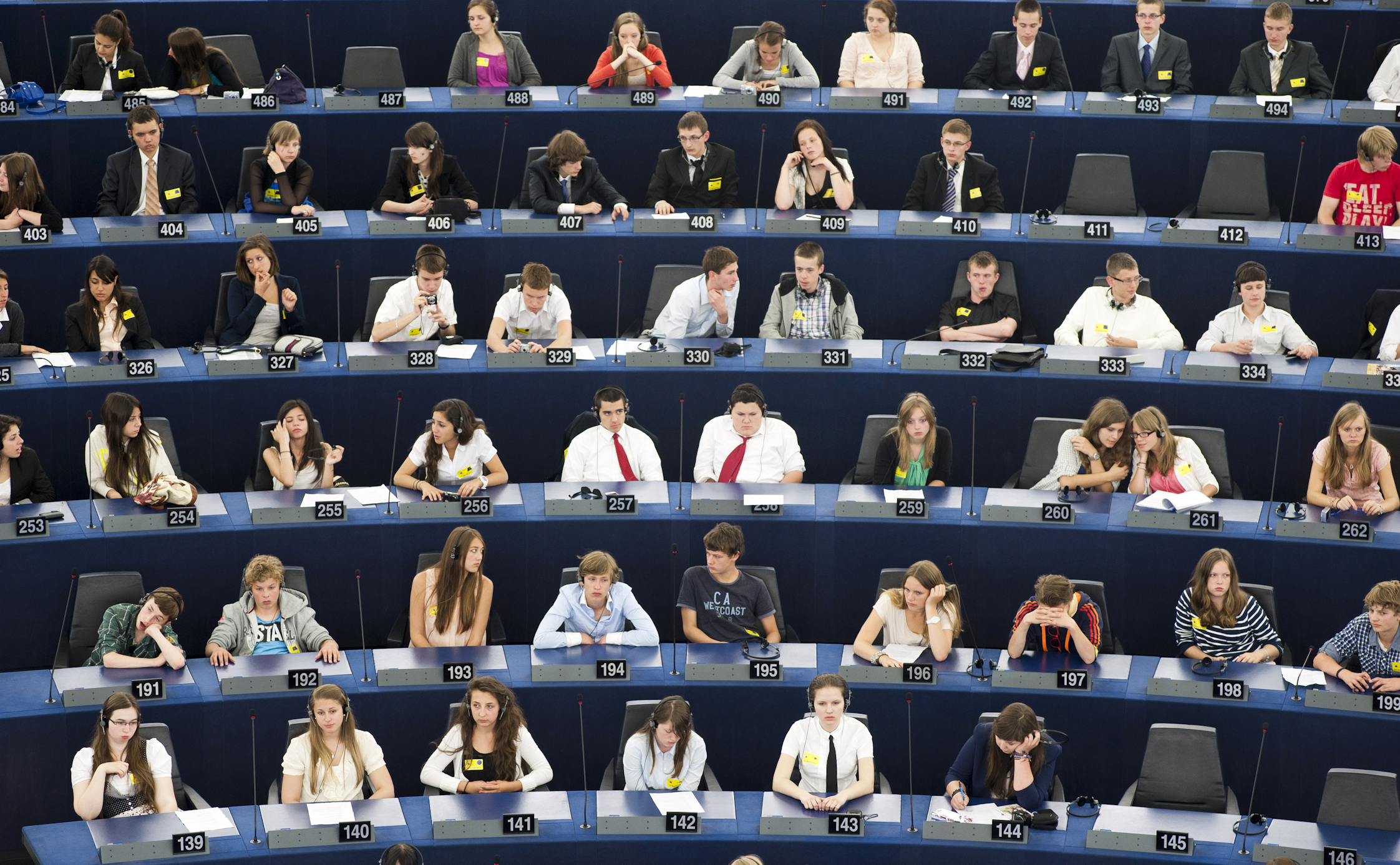 Daarna wordt er vergaderd in de officiële vergaderzaal. De dagvoorzitter vat dan de conclusies samen. Daarna mag je stemmen. Elke groep maakt een groepsfoto en krijgt een Europese vlag mee.